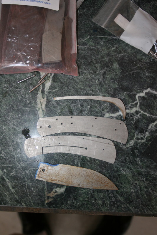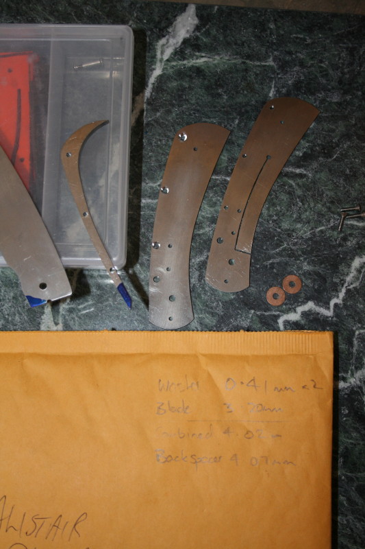 Ok I am going to have some spare time in the shed this afternoon I thought I would try to get everything to the stage where I can see how the knife fits together. I'll be using the back spacer provided so I'll need to drill some placement holes in that. So the plan is