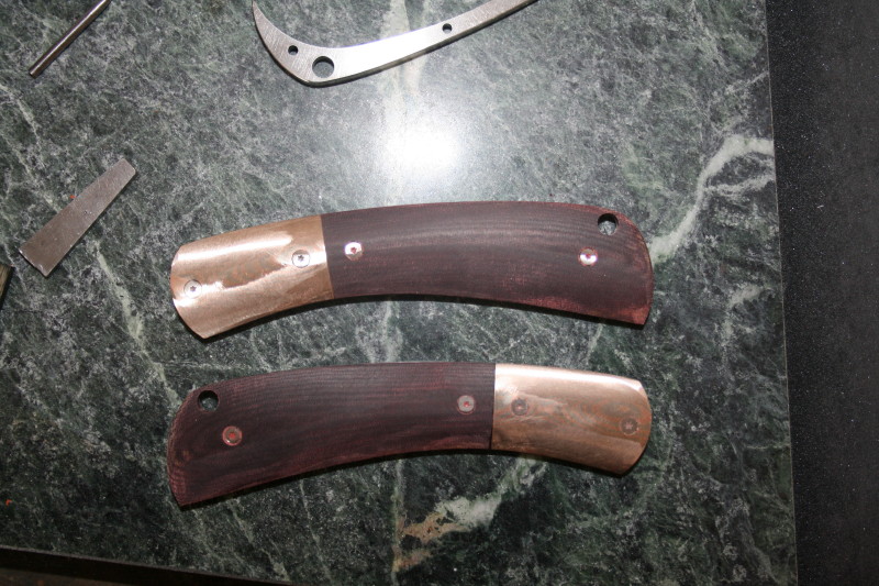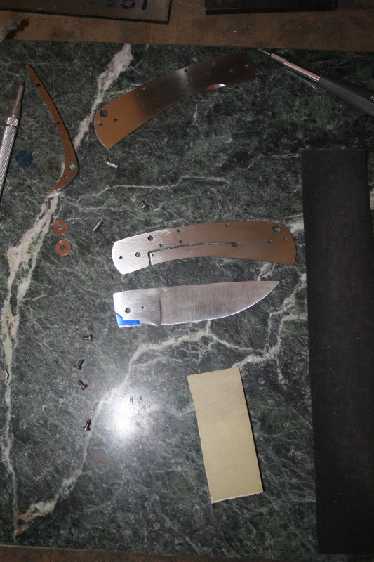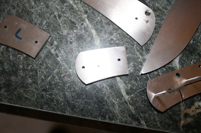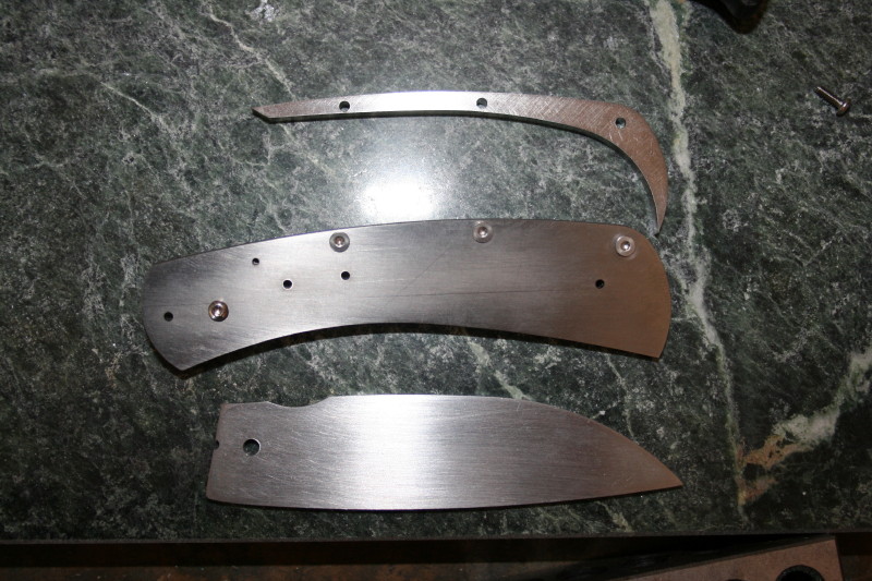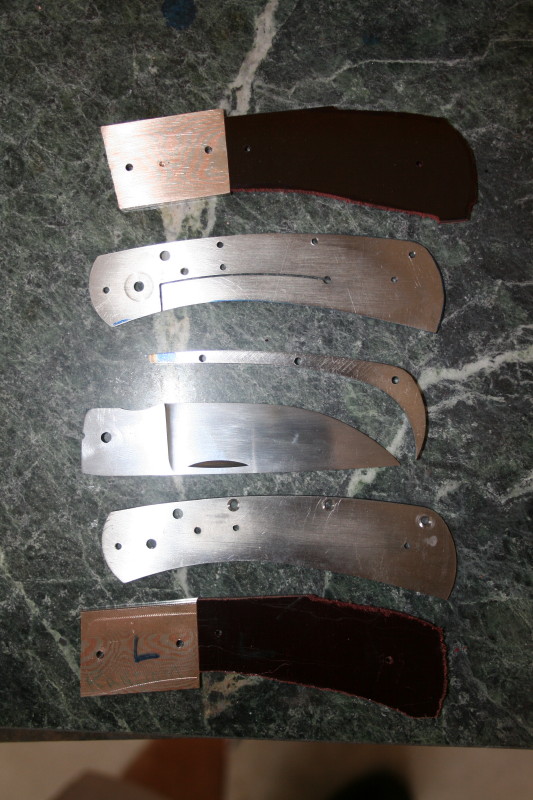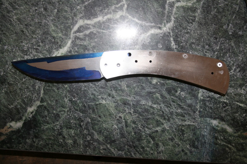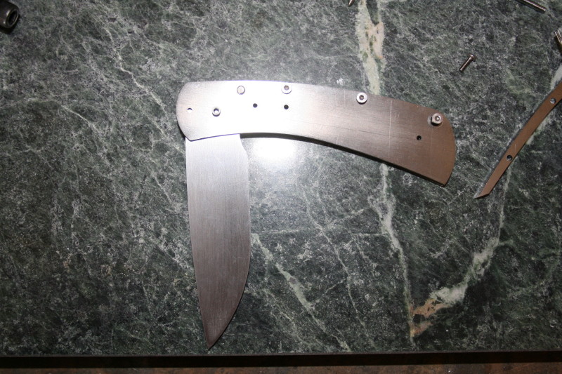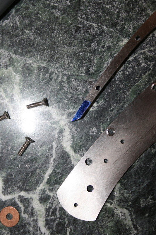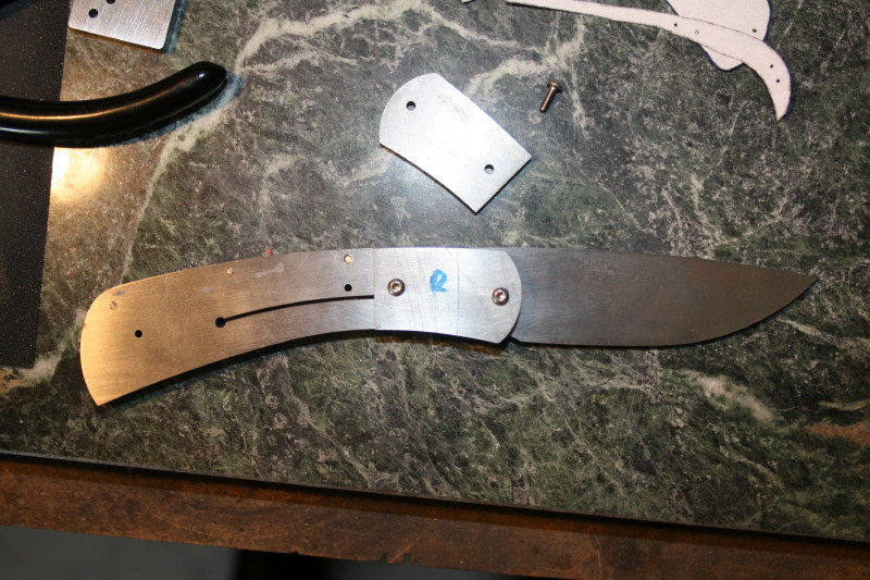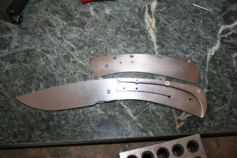 That is where I got up to. I also counter bored the holes in the bolsters and handle scales. Everything is ready now for HT and rounding off the handles. I'll HT the blade one night this week and hopefully I'll have the knife finished next weekend. The last blocking point for me is fitting up the lock since I have never done that before. I'll have to get a piece of micarta or something and grind a 7-8 degree slope on it to use as a rest for grinding the lock face.