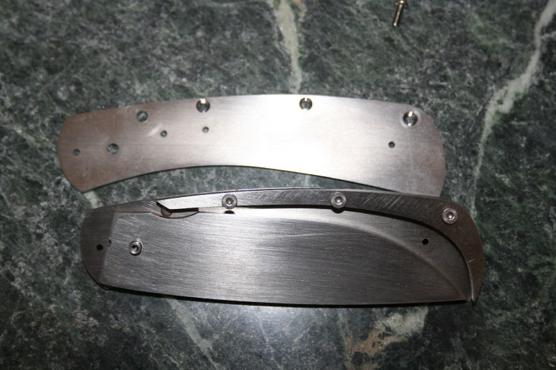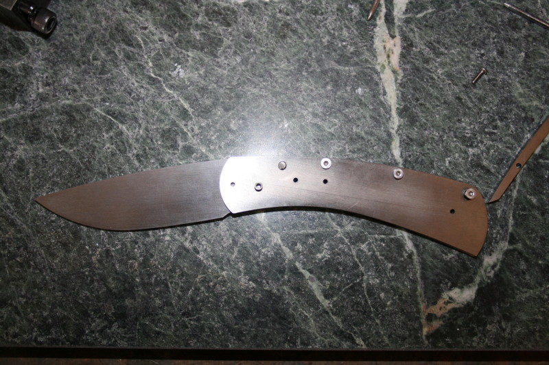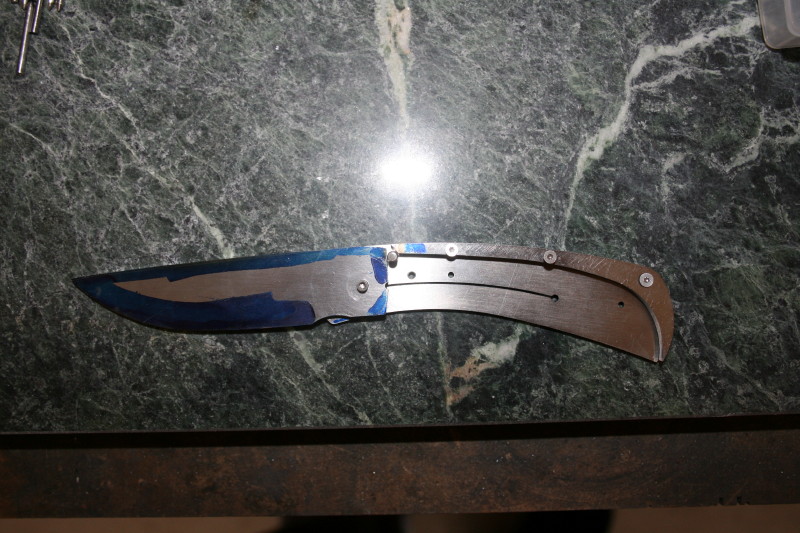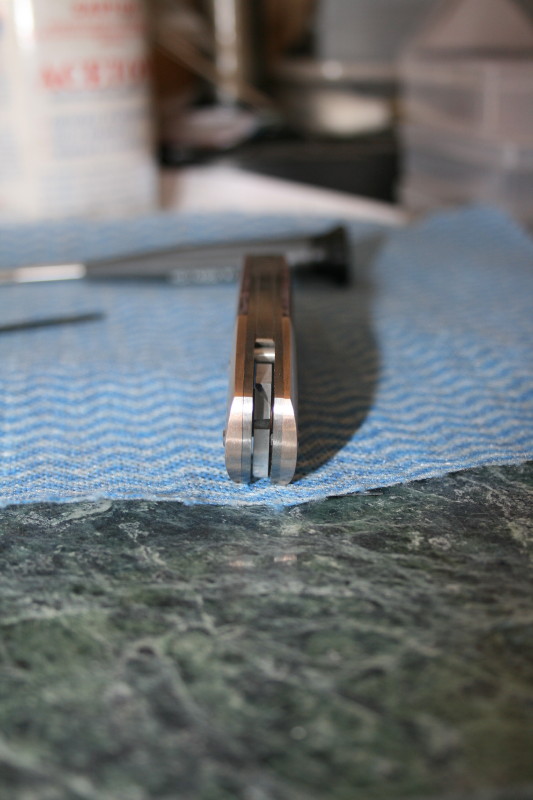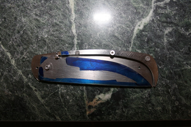 There wasn't a real lot that needed taking off the back spacer. On the blade all I needed to remove was the bevel from the waterjet process. Once that bottom edge was cleaned up it passed the stop pin without any problems.