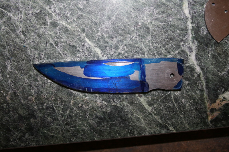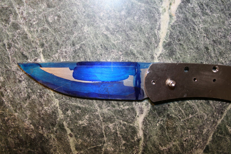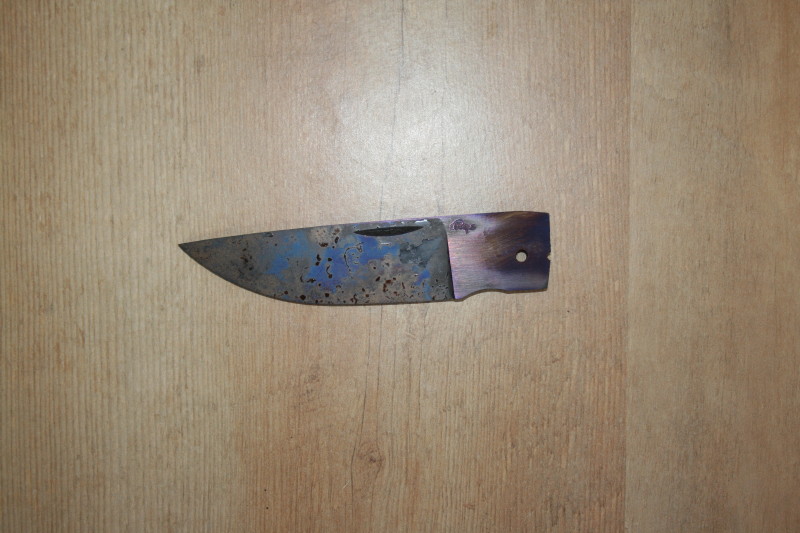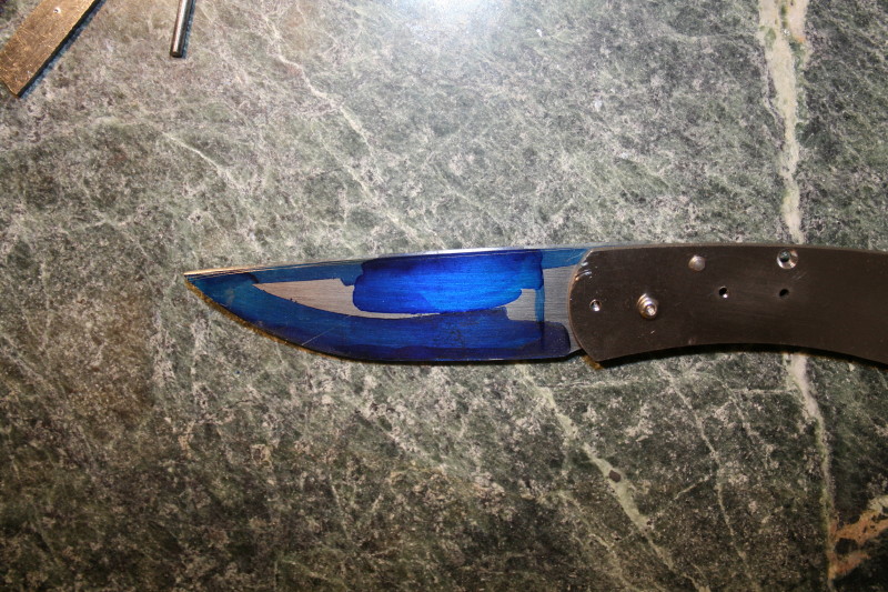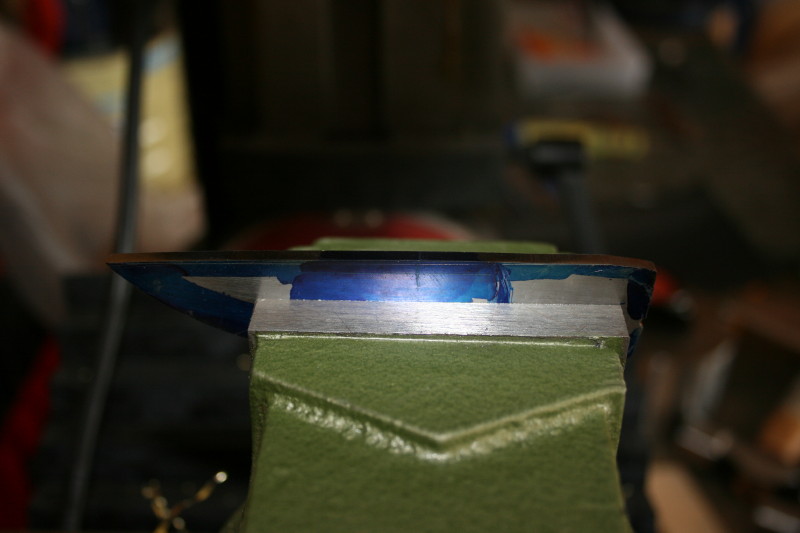 Normally you would expect a nice straw colour but the rear on the blade has gone past that colour and is a dark purple so now I am going to have to HT the blade again.