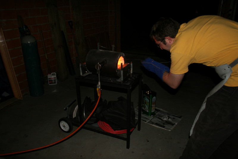 This is my HT setup. I use the forge that a few other knifemakers and I spent a weekend making. In the end 4 of us made 7 forges so we could sell the extra 3 to fund all the materials for all the forges. I have a little speaker magnet on the side of my cart so I can test for the point where the blade goes non magnetic.