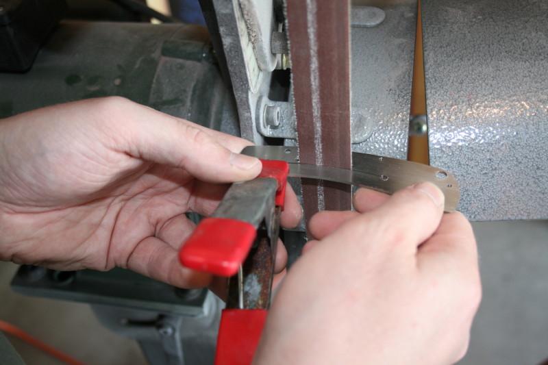 The blade was a little bent. It was still ok to sand off it is hard to tell in this photo but there is mill scale in the center section. I wanted to get this side completely flat before I went drilling holes.