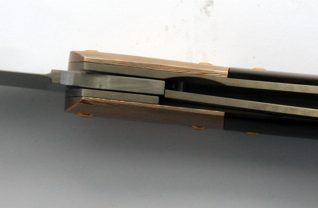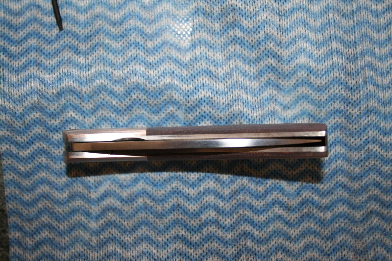 Before grinding the ramp for the lock I bent the lock out and fitted the detent ball in place. Here is the closed blade. The detent ball fits very nicely holding the blade closed.