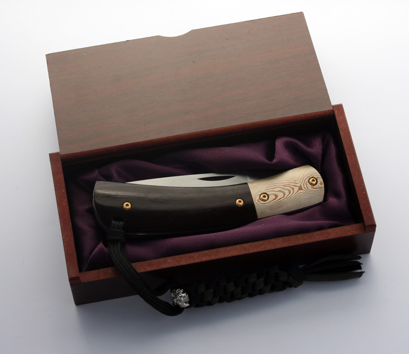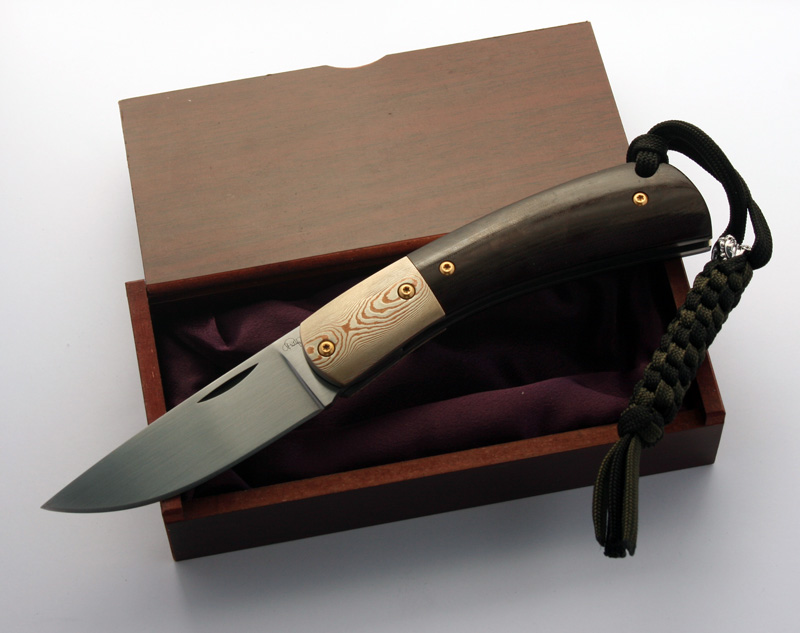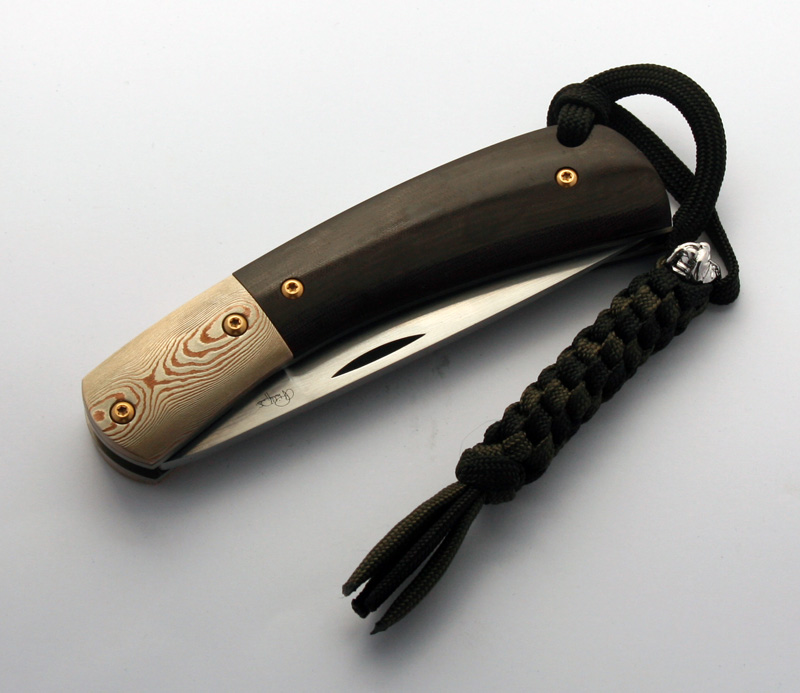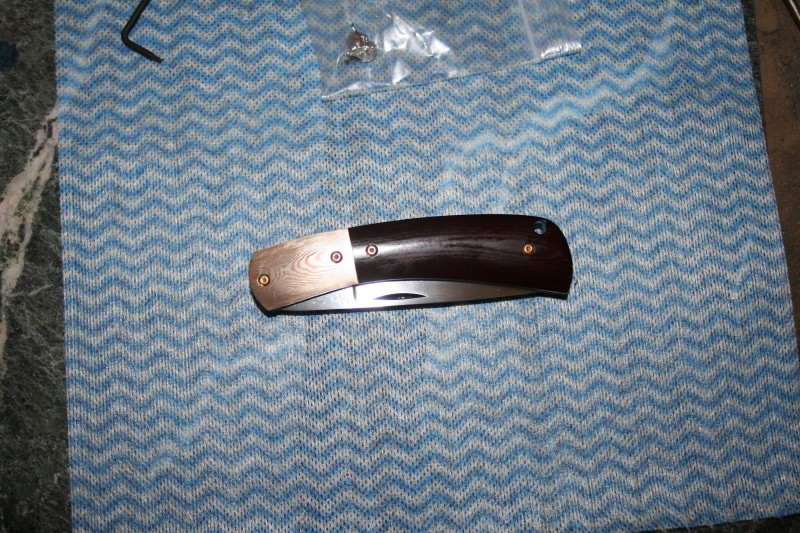 Since then I have etched the mokume bolsters and made up the lanyard. The knife turned out great. I just need to figure out if I can do anything to fix the sticky lock and I'll be done. If anyone has any fixes I can try out please let me know.