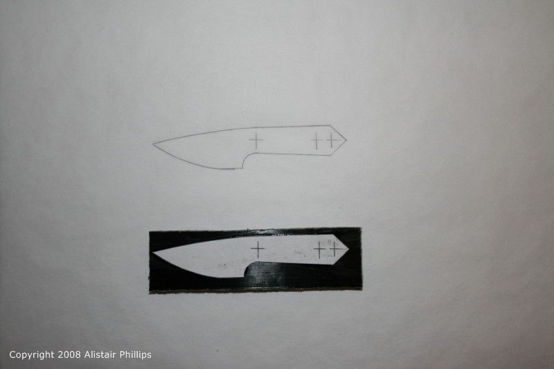 I photocopied the template, cut it out and glued it to the micarta with some pva glue.