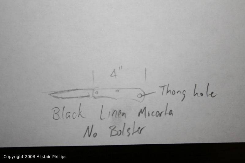 If there is anything else to fit in the handle draw it in now. We want to fit the blade around those things. I have drawn in the location and size of the thong hole tube here.